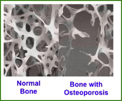 Osteoporosis causes weak bones. In this common disease, bones lose minerals like calcium. They become fragile and break easily. As a woman ages, her hip fracture risk equals her combined risk of breast, uterine, and ovarian cancer.