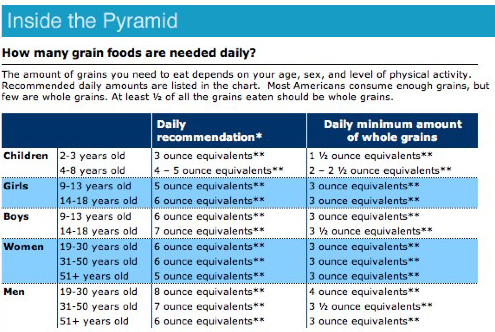 What Is a Serving Size of Grain?It is recommended that you eat three or more servings of whole grains a day and that at least half of your grains be WHOLE grains. You can increase your consumption of whole grains by slowly adding them to your meals. How many grain foods are needed daily? The amount of grains you need to eat depends on your age, gender, and level of physical activity. How many grain servings are recommended? Examples of 1 Serving of Grain